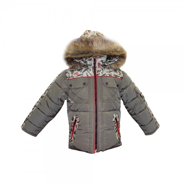 Куртка и полукомбинезон. Ткань верха п/э с водоотталкивающей и ветрозащитной пропиткой, спинка и полочки куртки с подкладкой из флиса, низ полукомбинезона с резинкой внутри и отворотами, позволяющими регулировать длину, опушка съемного капюшона – искусственный мех.