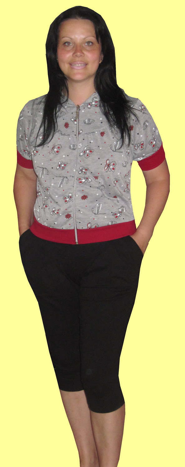 Костюм (кулирка,куртка на молнии, на кокетке , капюшон,,короткий рукав+бриджи сборенные) рр. 46, 48, 50, 52